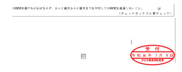 本年 7 月の変更前は、「申請を受け付けました」というコメントのみの通知でしたが、変更後は提出した 36 協定届に受理印が押された公文書が発行されるようになりました。 公文書の発行により、関与先企業に対しても説明がしやすくなり、電子申請による提出への 抵抗感は少なくなったかと思われます。なお、1日〜数日程度で、公文書が発行され、手続 きとしては完了します。